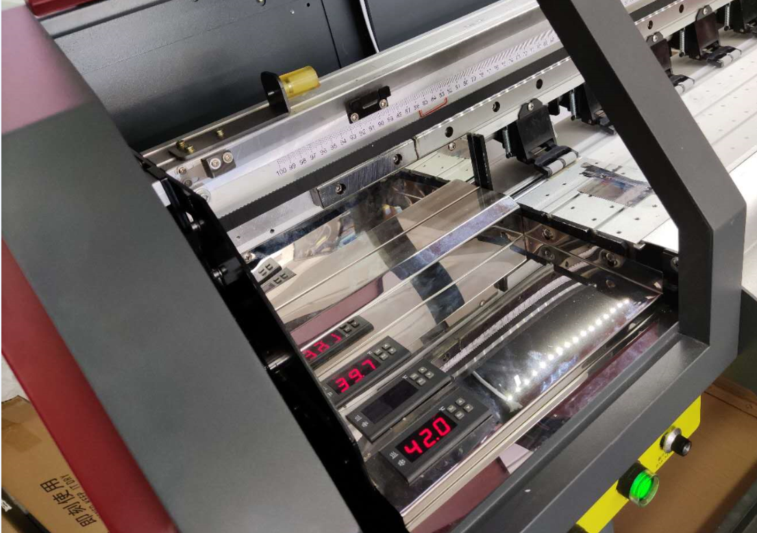 1、打印機(jī)上有前中后3段式烘干,打印機(jī)的左側(cè)有專門的溫度控制開關(guān)和溫度顯示屏,承托打印耗材的模具一體化平臺(tái)下方就是烘干系統(tǒng),摸起來是溫?zé)岬?。在打印的時(shí)候,就能夠?qū)D案進(jìn)行烘干。