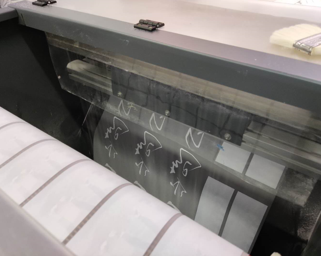 5、導(dǎo)帶烘干傳送出來的就是可壓燙的燙畫成品,可直接拿去壓燙,也可以收卷保存,不會(huì)有糊墨現(xiàn)象發(fā)生。