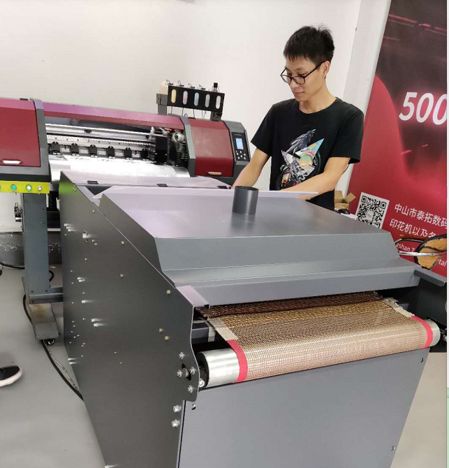 泰拓?cái)?shù)碼的柯式燙畫,只需投資一套燙畫打印機(jī)和抖粉機(jī),基本一次投資到位,占地面積不足一個(gè)車位大小,且是一站式鏤空打印和自動抖粉,出來即是燙畫成品,效率很高。